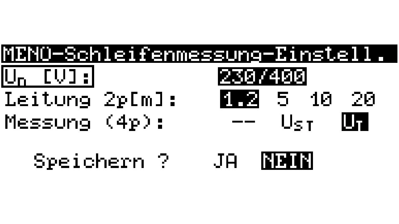 Zum Speichern der Messung der Schleifenimpedanz muss nach durchgeführter Messung die ENTER-Taste gedrückt werden. Auf dem Display wird der Speicherplatz wie folgt dargestellt: