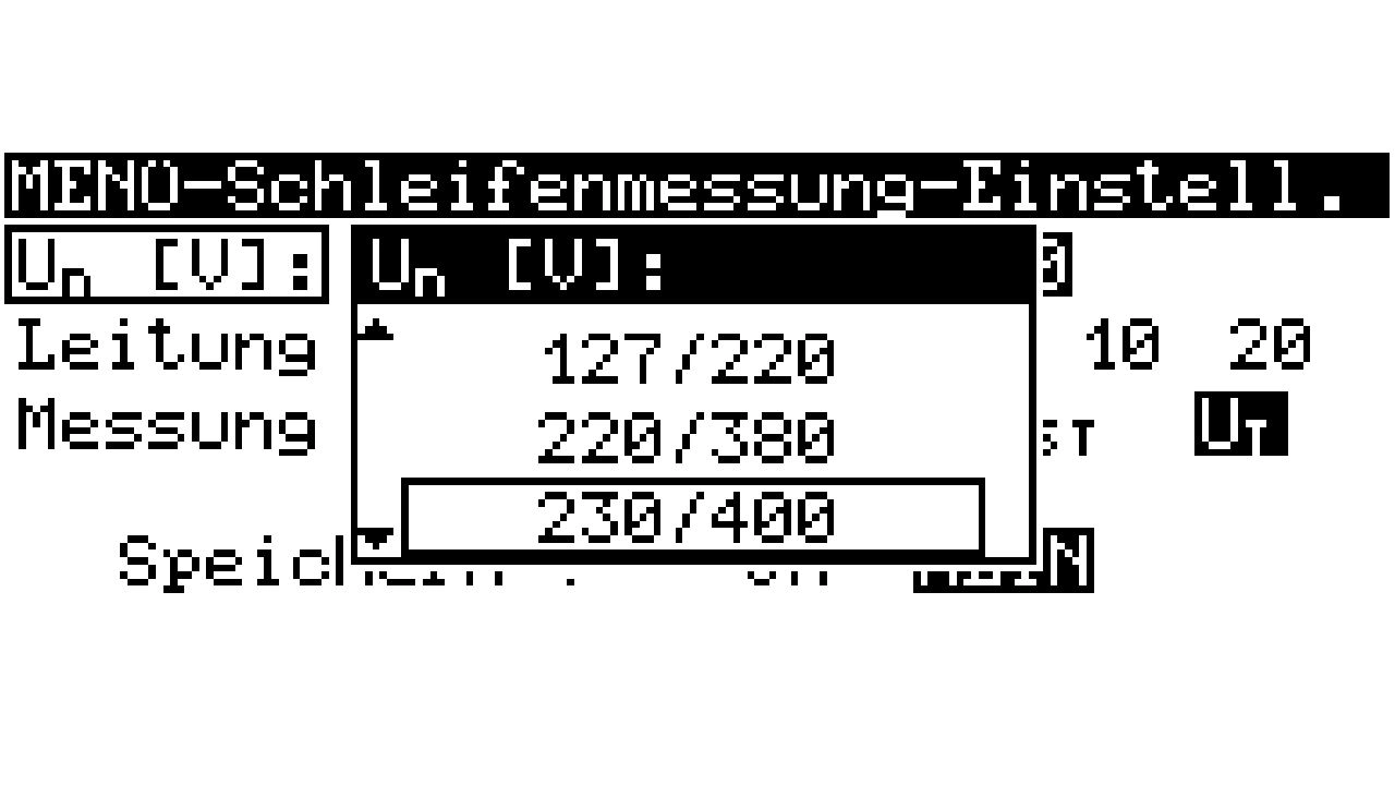 - Wähle unter dem Punkt Un [V] die entsprechende Nennspannung aus und speichere die Einstellung