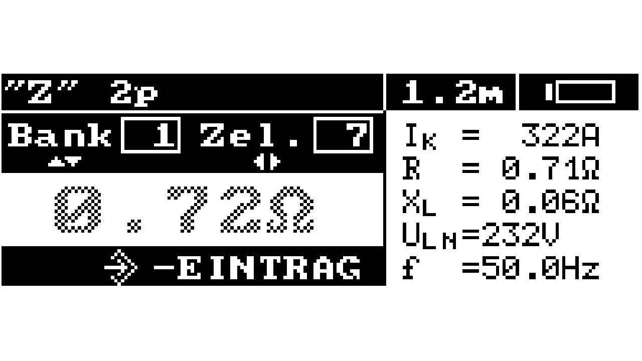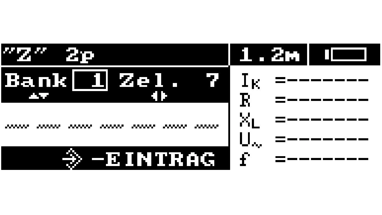 Zum Speichern der Messung der Schleifenimpedanz muss nach durchgeführter Messung die ENTER-Taste gedrückt werden. Auf dem Display wird der Speicherplatz wie folgt dargestellt: