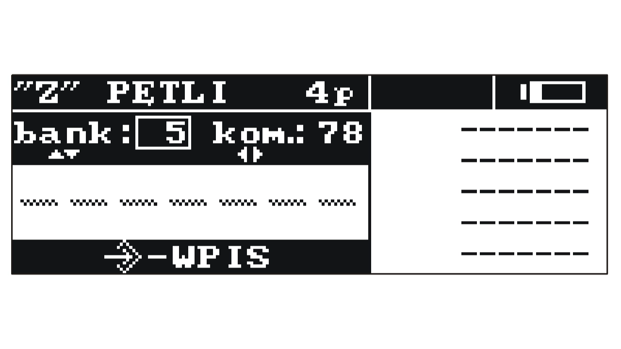 Wybór banku i komórki odbywa się za pomocą przycisków strzałek.