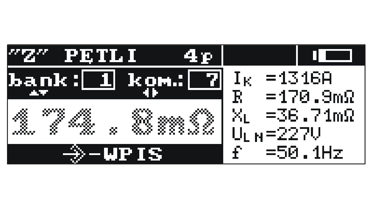 - Zapisywanie wyniku pomiaru impedancji pętli zwarcia